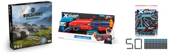 ( ilość produktów: 105 )WORLD OF TANKS GRA PLANSZOWA +DUŻA WYRZUTNIA KARABIN X-SHOT +74 strzałki