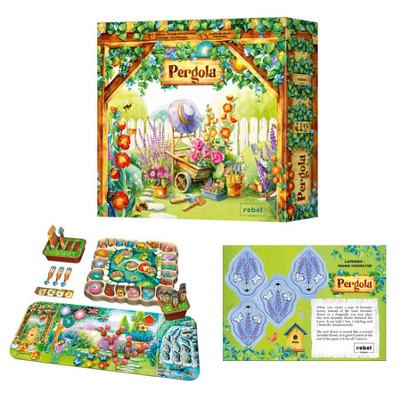 Podczas rozgrywek w Pergolę wcielisz się w ogrodnika, który z zaangażowaniem sadzi różne rośliny, przyciągając do swojego ogrodu owady. W każdej rundzie będziesz wybierać z dostępnych narzędzi takie, które pozwoli Ci wykonać najbardziej opłacalne akcje. Poszczególne decyzje będą miały znaczący wpływ nie tylko na wygląd Twojego zakątka, ale także na to, ile punktów zdobędziesz. Do wypróbowania jest wiele różnych strategii i dróg do zwycięstwa – to od Ciebie zależy, jakie rośliny posadzisz i jak ukształtujesz swój wymarzony ogród!