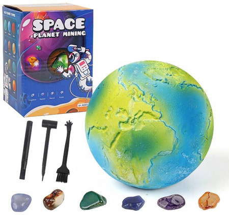 W formie gipsowej umieszczono różne elementy do odkrycia. Zestaw umożliwia własnoręczne odsłanianie ukrytych fragmentów, co rozwija ciekawość i zachęca do poznawania podstawowych zagadnień naukowych.Narzędzia do wykopywania